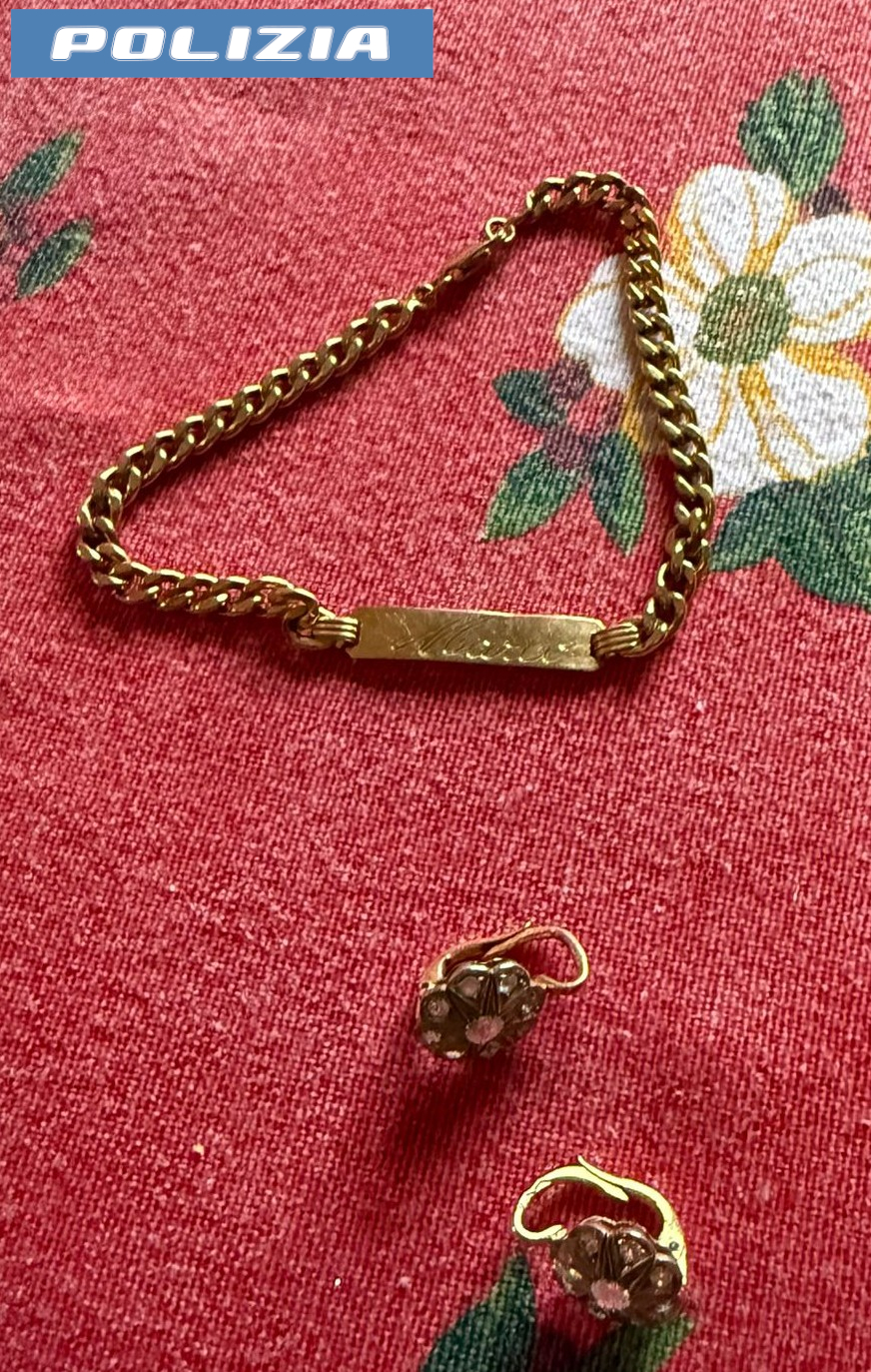 È il segnale. I poliziotti intervengono immediatamente, bloccano il ragazzo e lo perquisiscono. Nelle tasche trovano la refurtiva appena sottratta: monili in oro — il cui valore è in corso di quantificazione — e 450 euro in contanti. Tutto restituito alla donna.